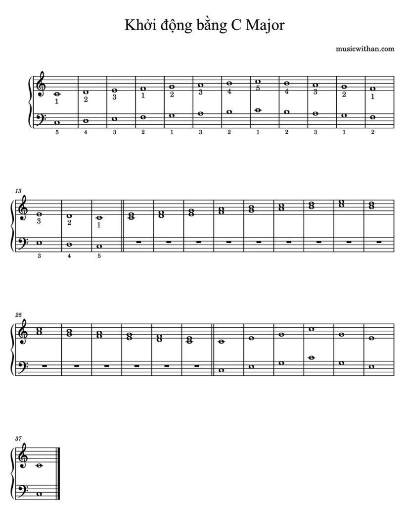 Mình sẽ đính kèm sheet gam C Major, cùng với một video hướng dẫn cụ thể cách tập gam hiệu quả. Chúc bạn tập đàn vui vẻ 🙂
